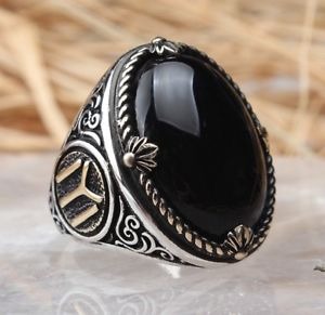 انگشتر مردانه نگین دار با نگین مشکی و تخت زیبا و خاص