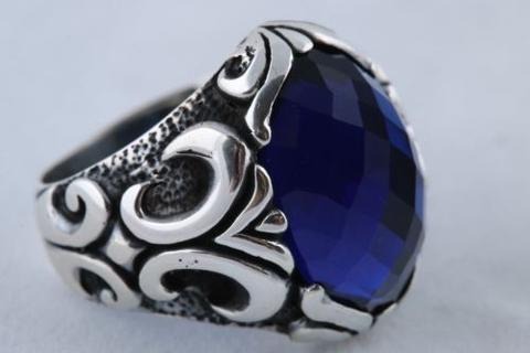 - انگشتر نقره مردانه نگین دار با نگین آبی خوشرنگ