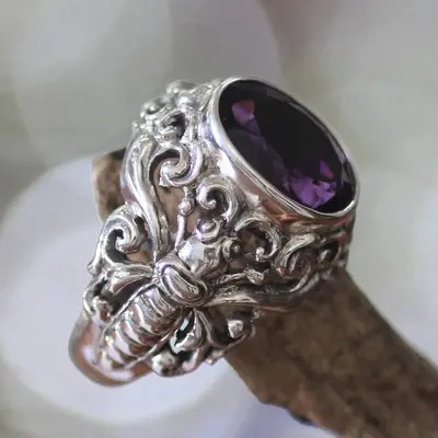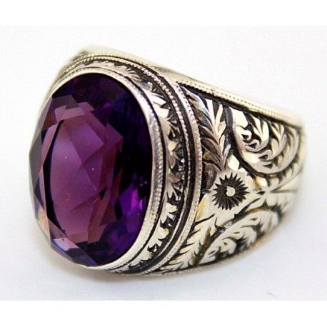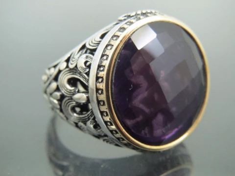 - انگشتر نگین دار مردانه با عقیق بنفش
