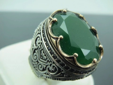 - انگشتر نگین دار مردانه با یاقوت سبز