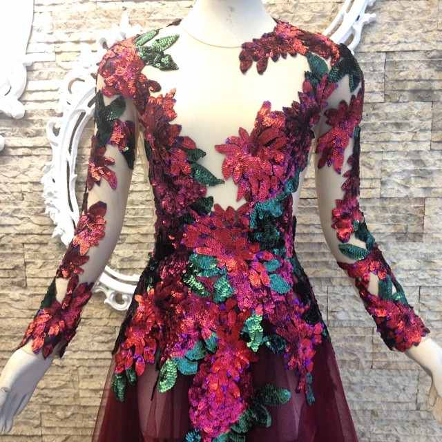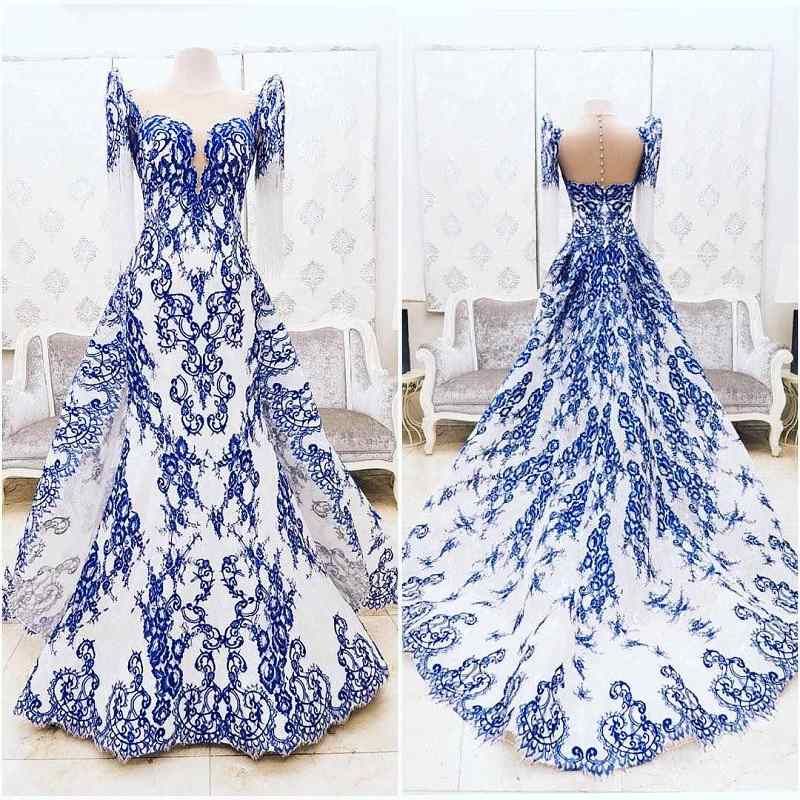 یک مدل لباس مجلسی بلند با دامن ماهی با آستین های بسیار زیبا که با حریر براق کار شده را در عکس زیر مشاهده می نمایید.