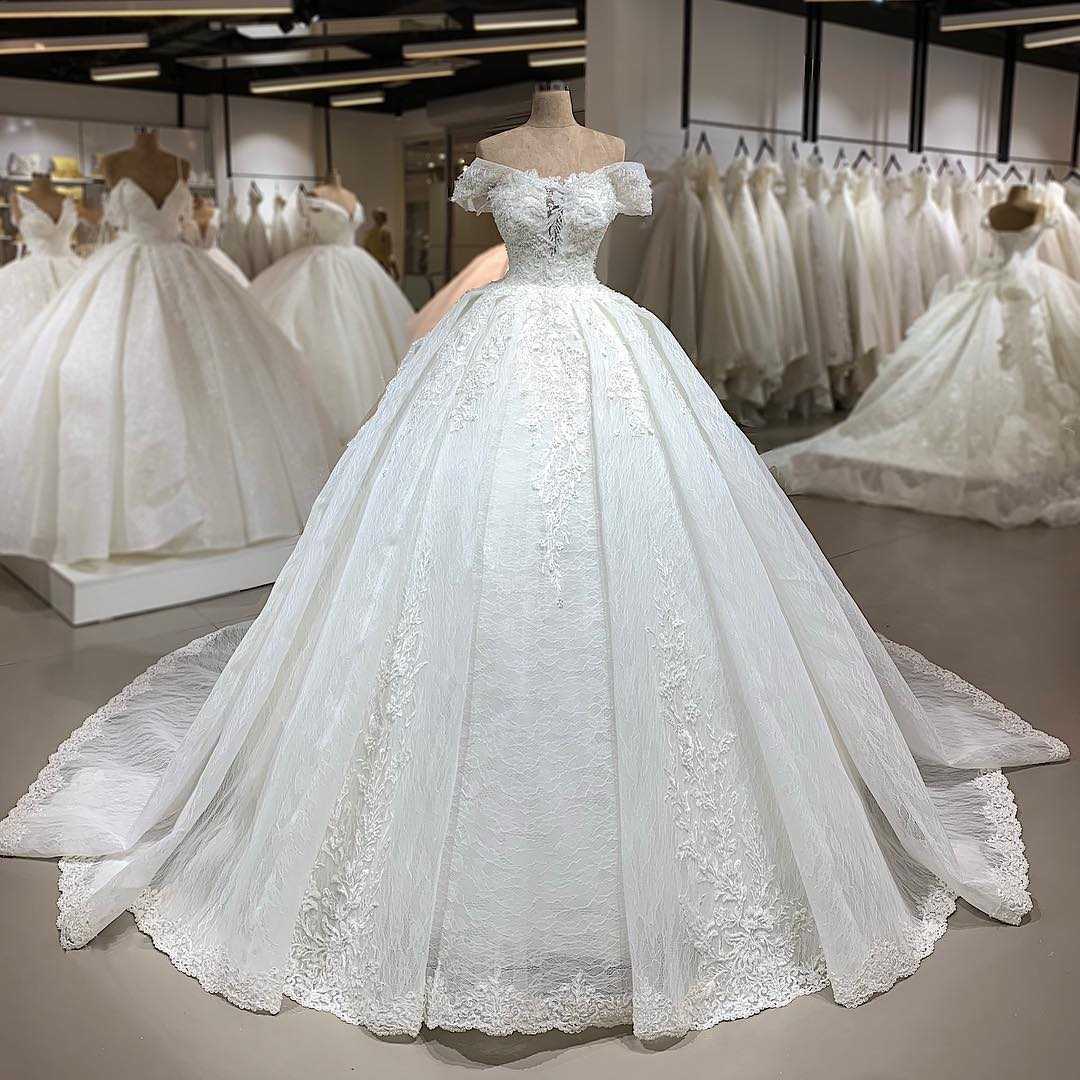 مدل لباس عروس ژورنالی با آستین سرخود با دامن پف دار