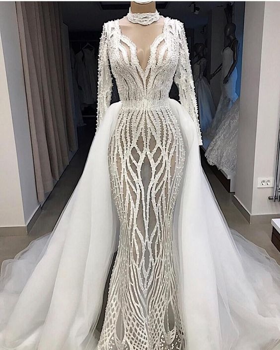 مدل لباس عروس ژورنالی آستین بلند 2019