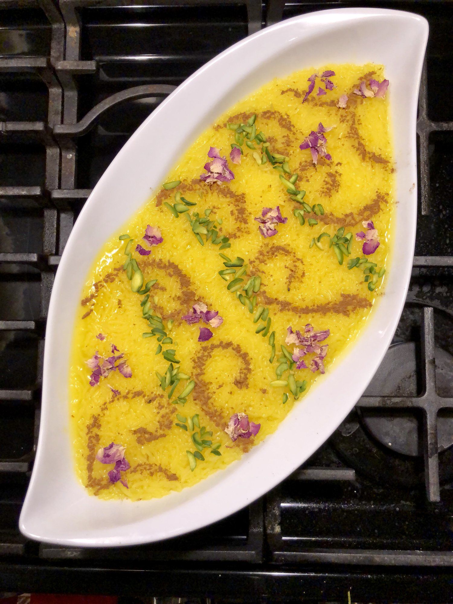 و در پایان شله زرد را در ظرف مناسب سرو می کنیم و با دارچین ، خلال پسته و بادام شله زرد را تزیین می کنیم.