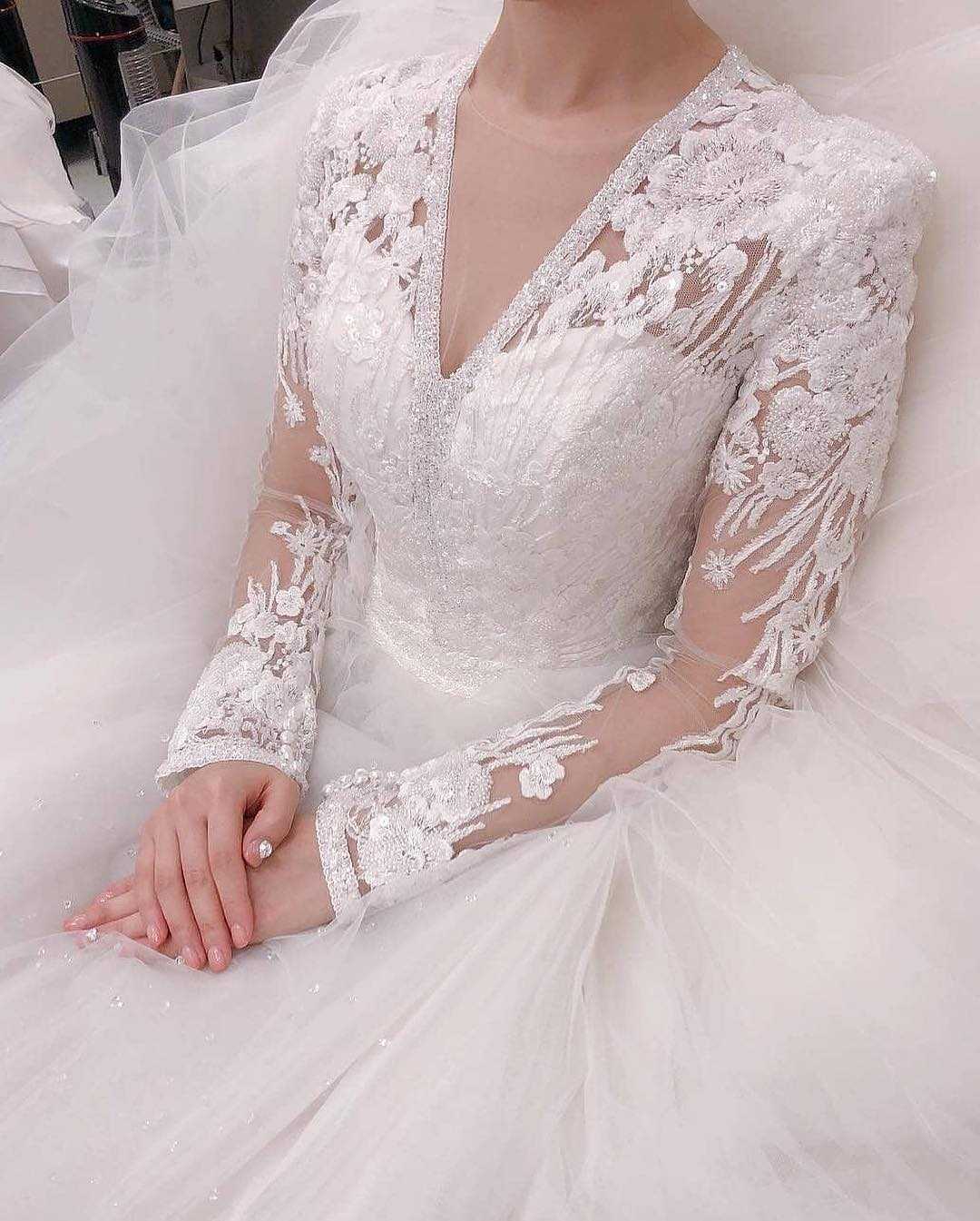 - مدل لباس عروس ژورنالی آستین دار 2019
