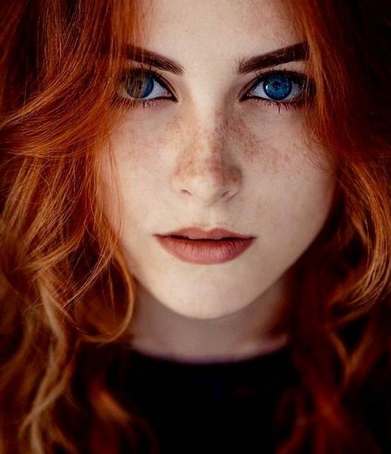 دختران مو قرمز معمولا چشمان روشن و رنگی دارند و کمتر پیش می آید که دارای چشم های تیره و مشکی باشند. در عکس زیر یک دختر با موهای قرمز و چشمان تیره مشاهده می کنید.