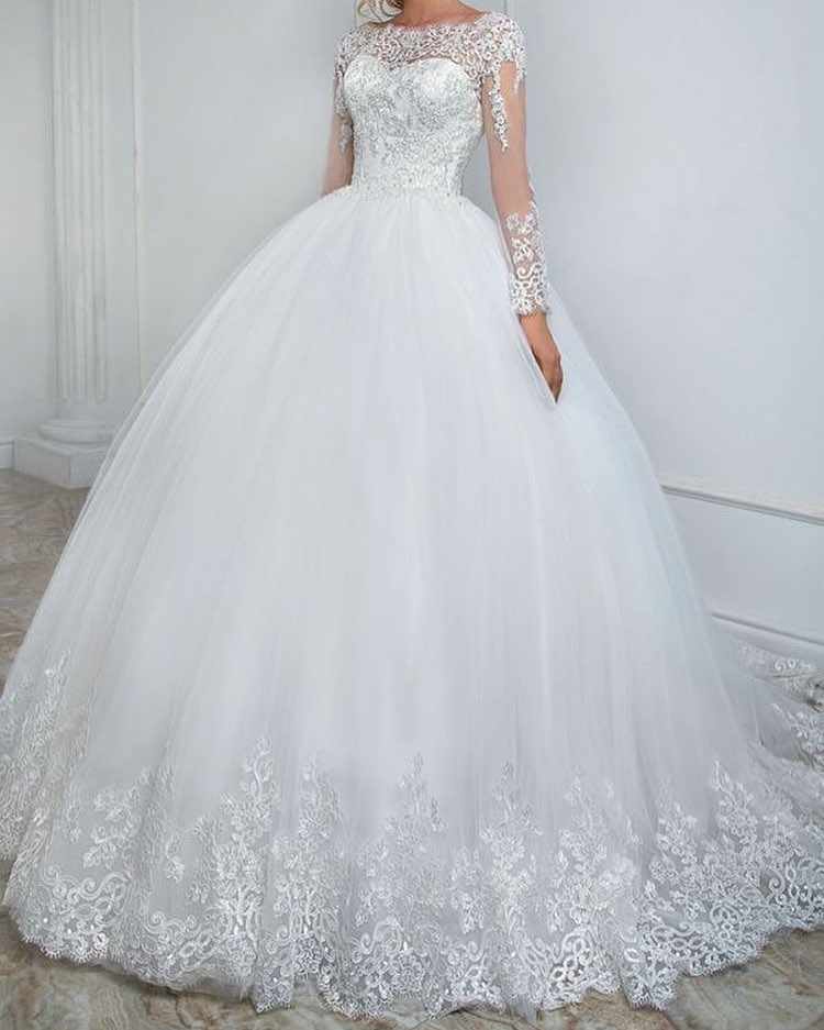 مدل لباس عروس پرنسسی آستین بلند پوشیده