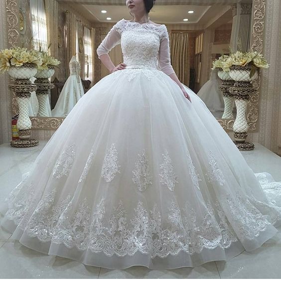 مدل لباس عروس پرنسسی آستین دار