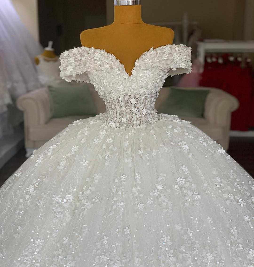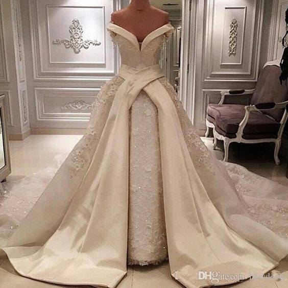 مدل لباس عروس پرنسسی آستین افتاده