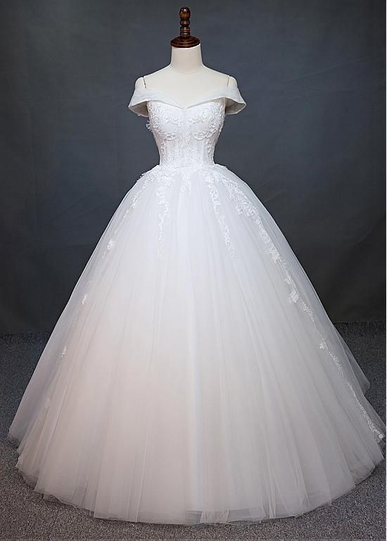 مدل لباس عروس پرنسسی یقه قایقی دامن تور ساده