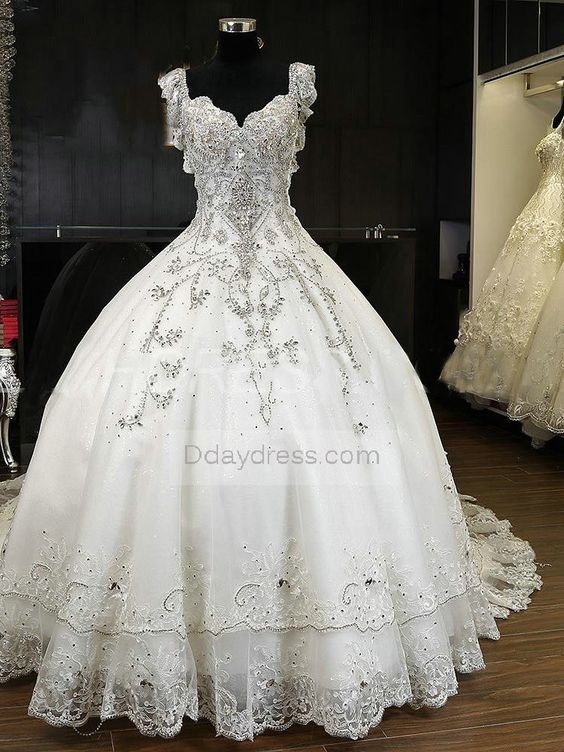 مدل لباس عروس پرنسسی با پراچه براق
