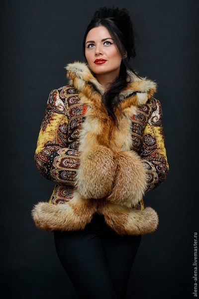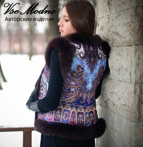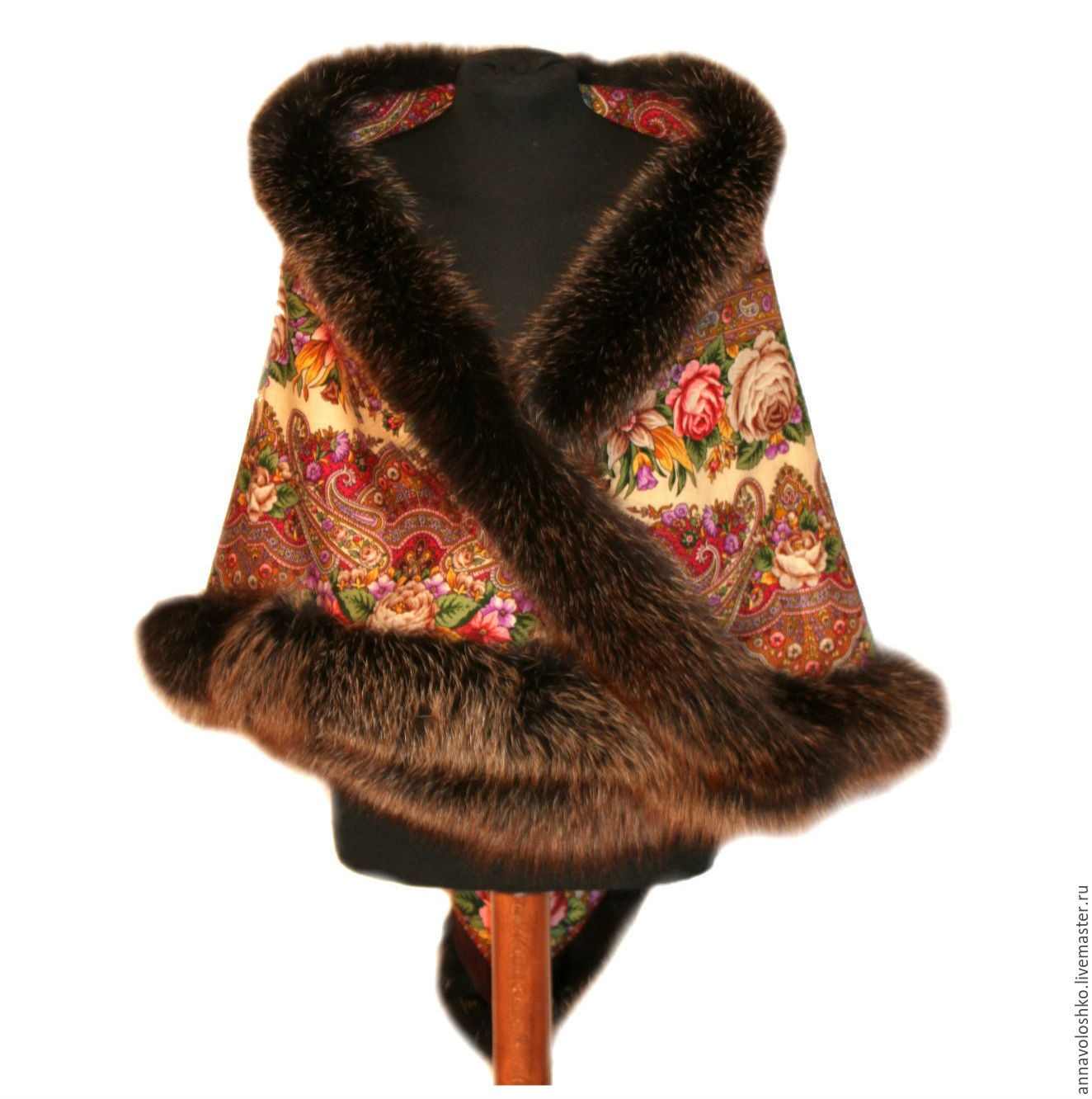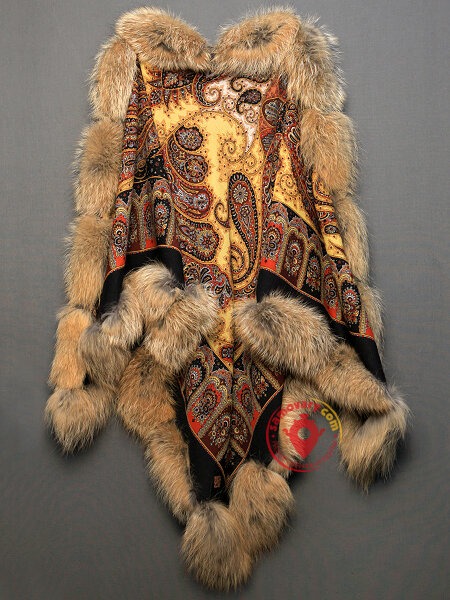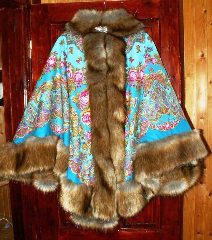 عکس پانچو زمستانی خز دار با پارچه طرحدار از جنس کتان ضخیم