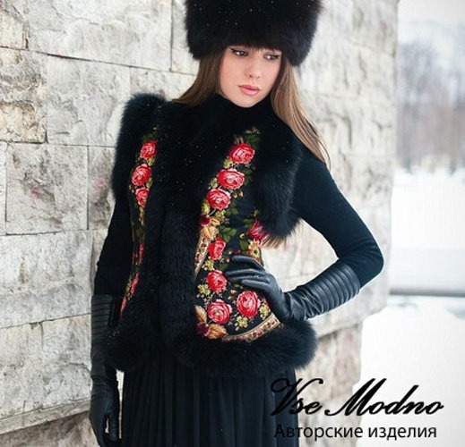 مدل پانچو زمستانی شیک خز دار با پارچه مشکی گل دار