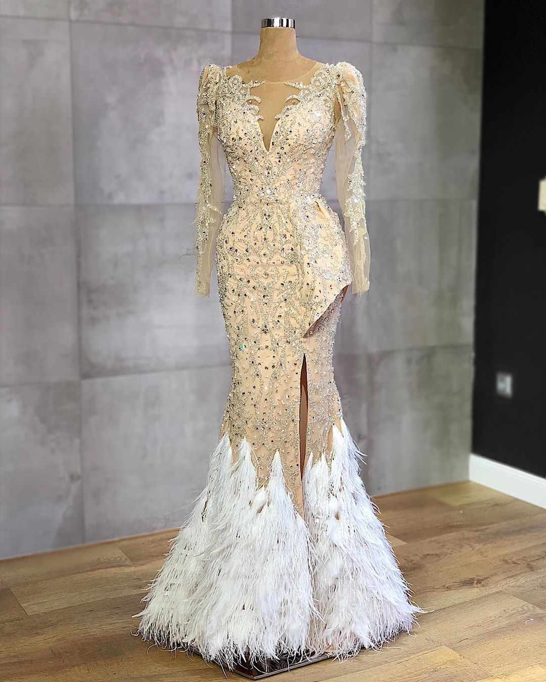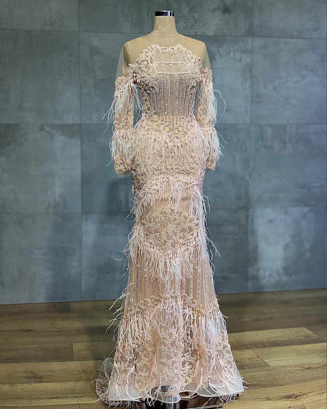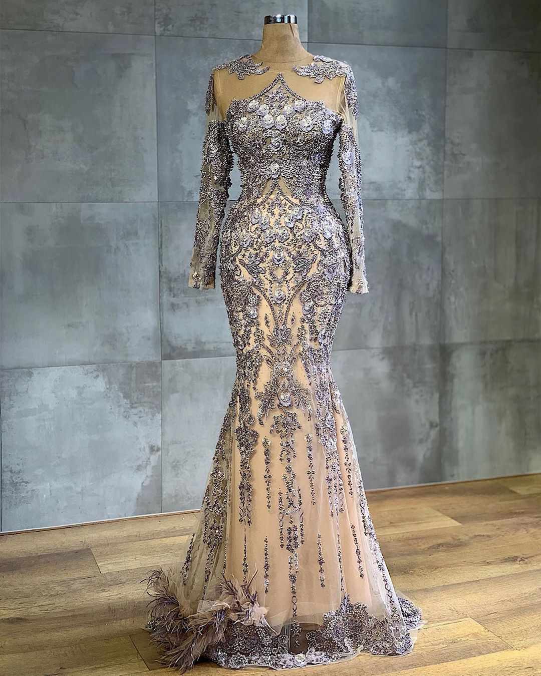 مدل لباس مجلسی آستین دار که تمام قد مدل بالا است