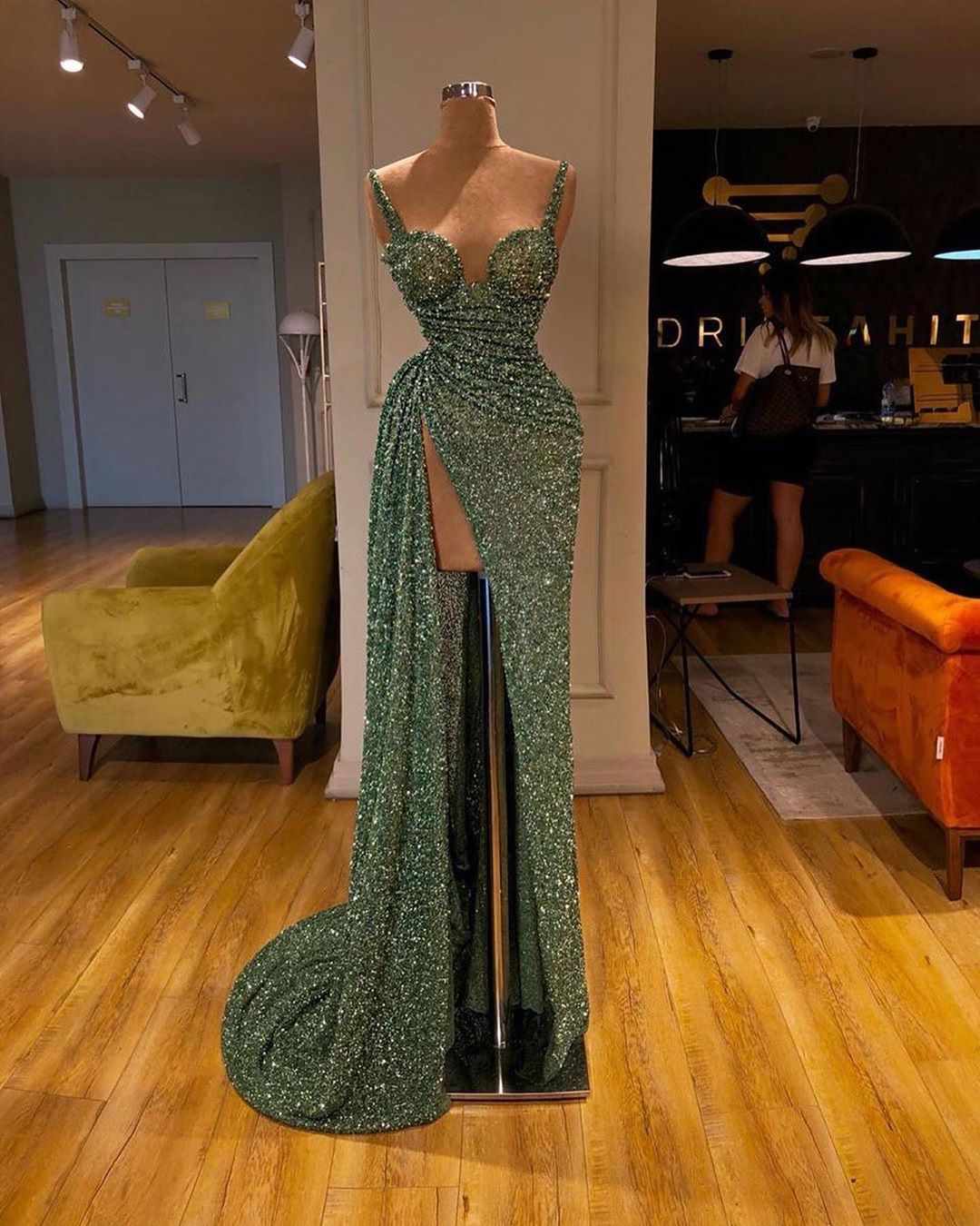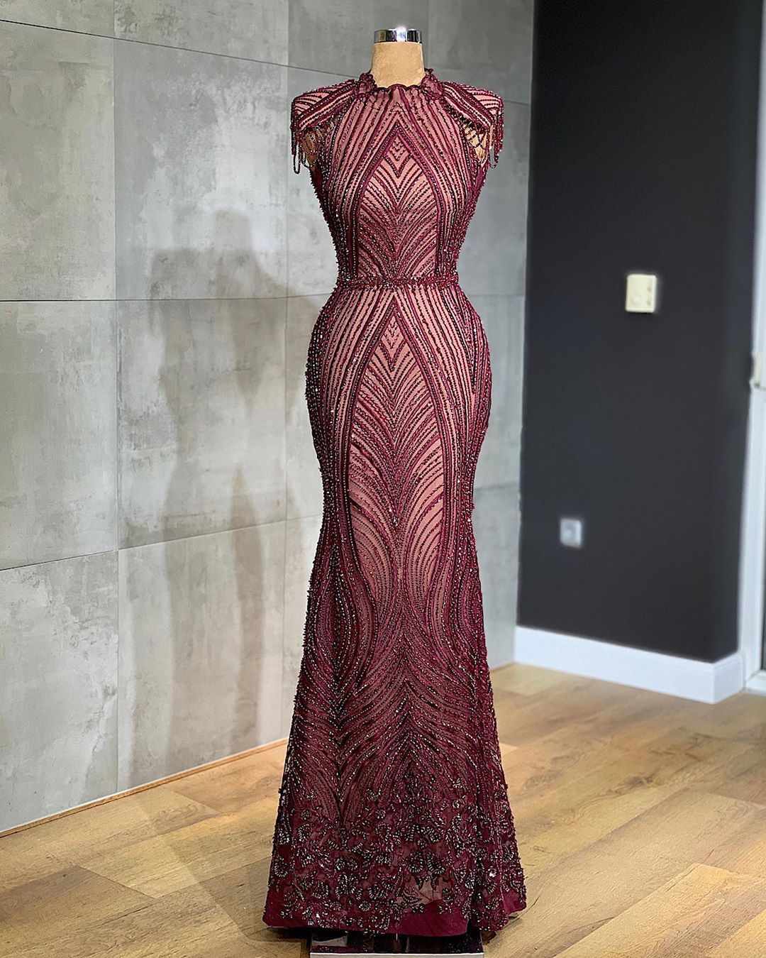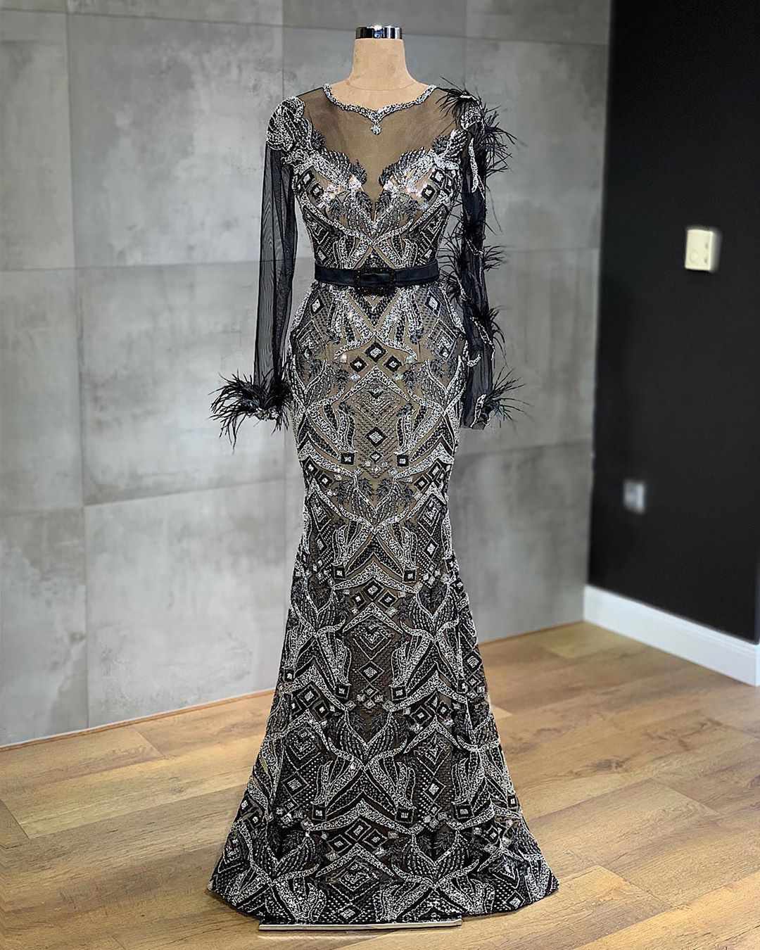 مدل لباس مجلسی آستین دار که تمام قد مدل بالا است