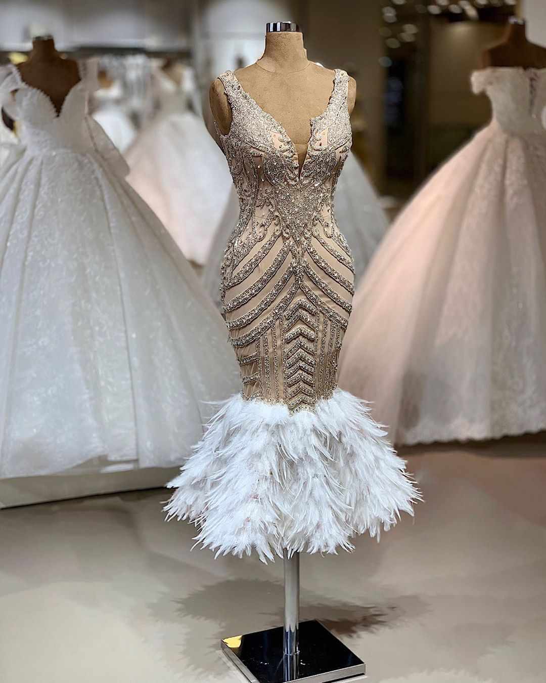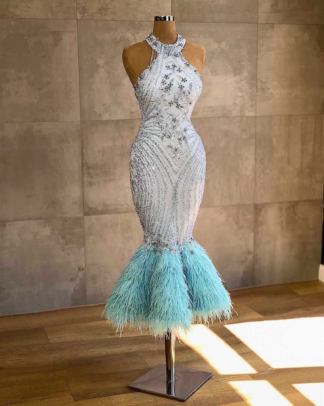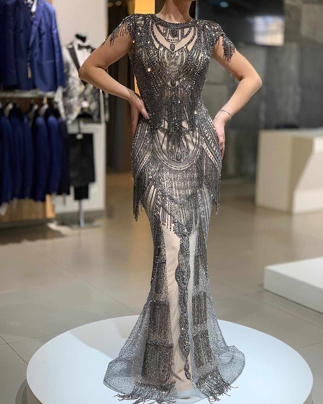 مدل لباس مجلسی کوتاه دامن ماهی آستین حلقه ای