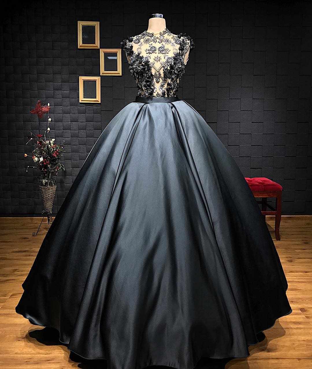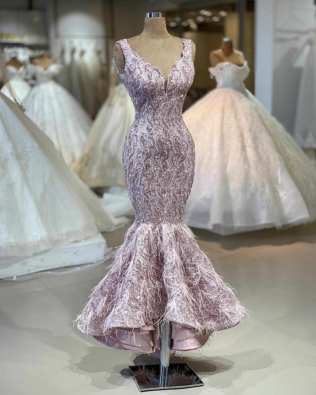 مدل لباس مجلسی بلند دکلته دامن کار شده