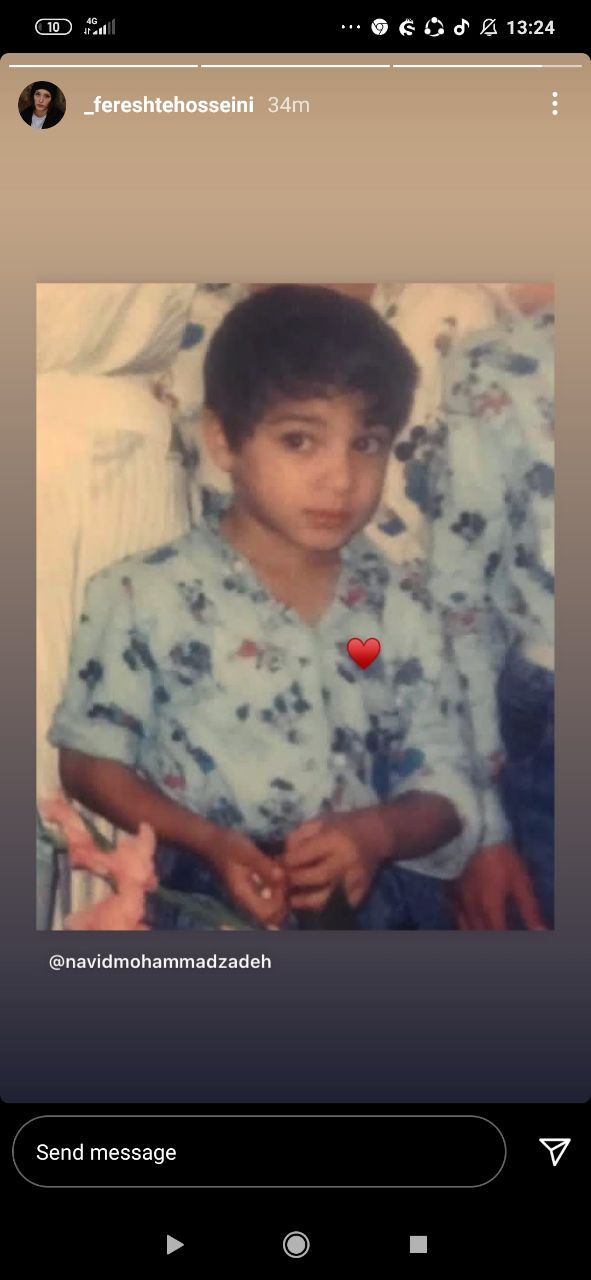 فرشته حسینی در اینستاگرام با نام fereshtehosseini_ فعالیت می کند و هم اکنون بیش از 361 هزار دنبال کننده دارد. اخیرا عکس هایی از او منتشر شده که با توجه به تشابه لباس هایش با نوید محمد زاده حاشیه هایی درباره آن ها بر سر زبان ها افتاده است.