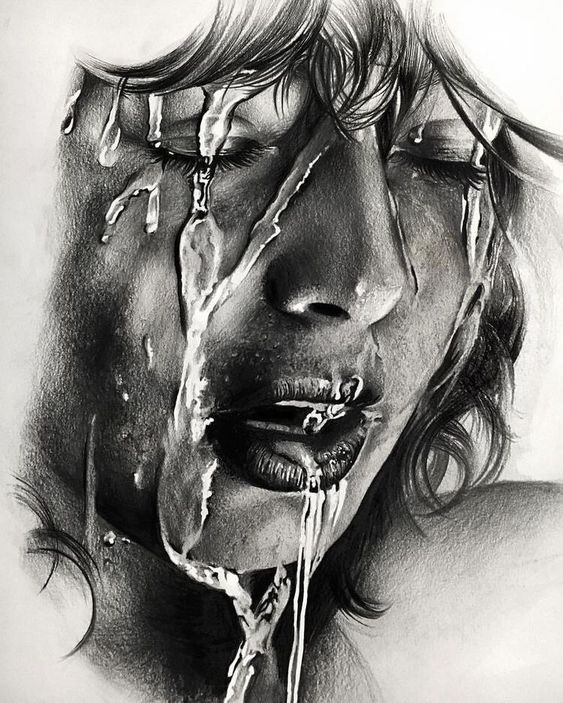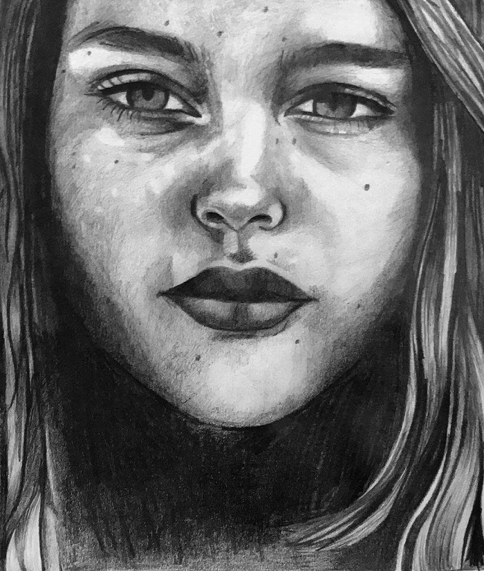عکس نقاشی دختر سیاه قلم بسیار واقعی