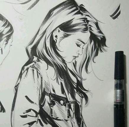 عکس نقاشی دختر سیاه قلم مناسب طراحی