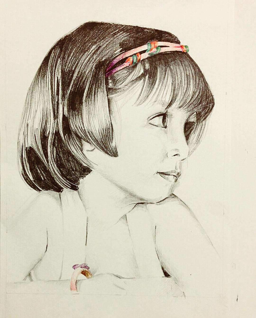 عکس نقاشی دخترزیبا با سیاه قلم با موی طبیعی