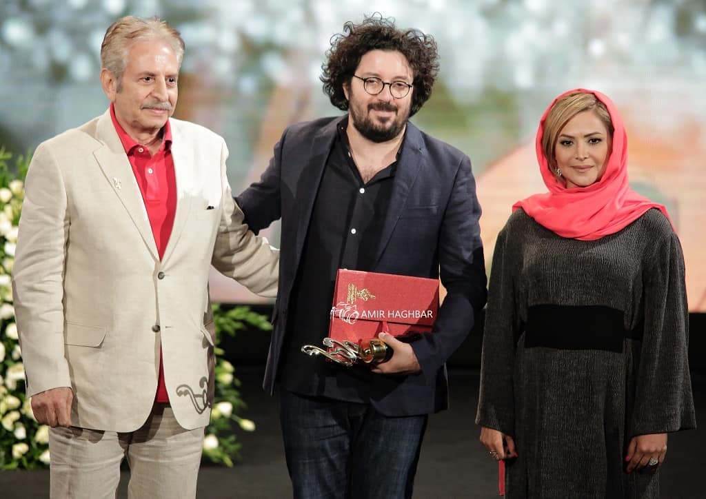 اهدای جایزه بهترین بازیگر مرد توسط هوتن شکیبا به نوید محمدزاده
