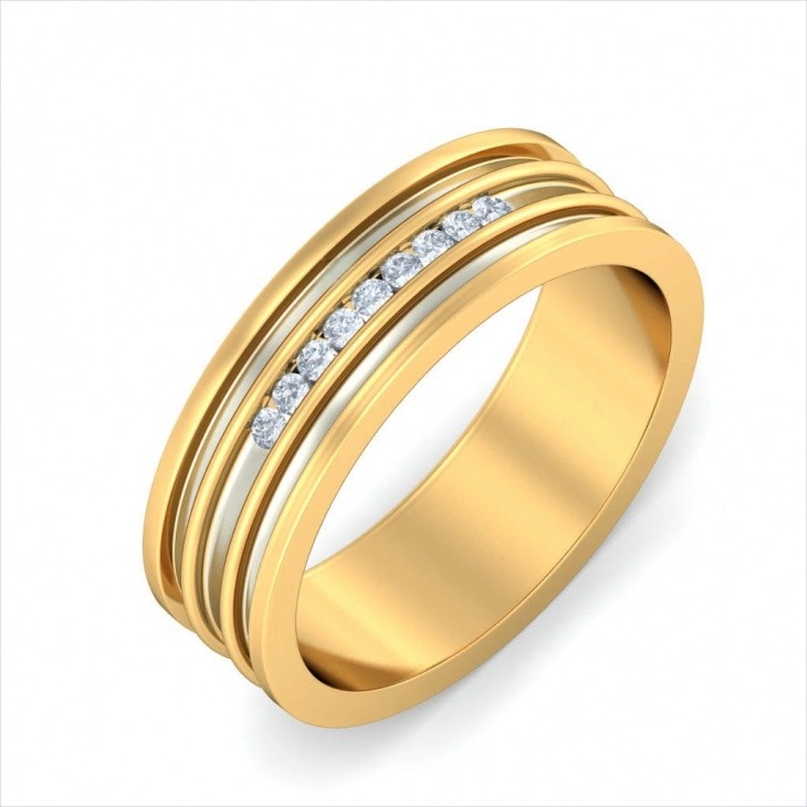 حلقه ازدواج مردانه طلا نگین دار جدید با شیارهای ظریف