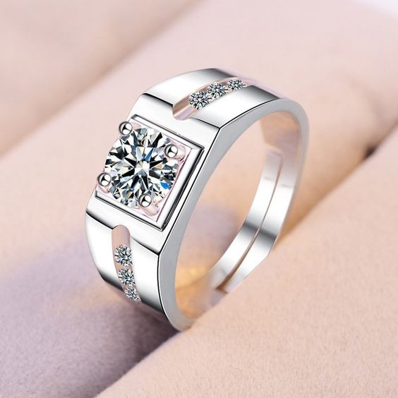 - حلقه ازدواج مردانه پلاتین تک نگین