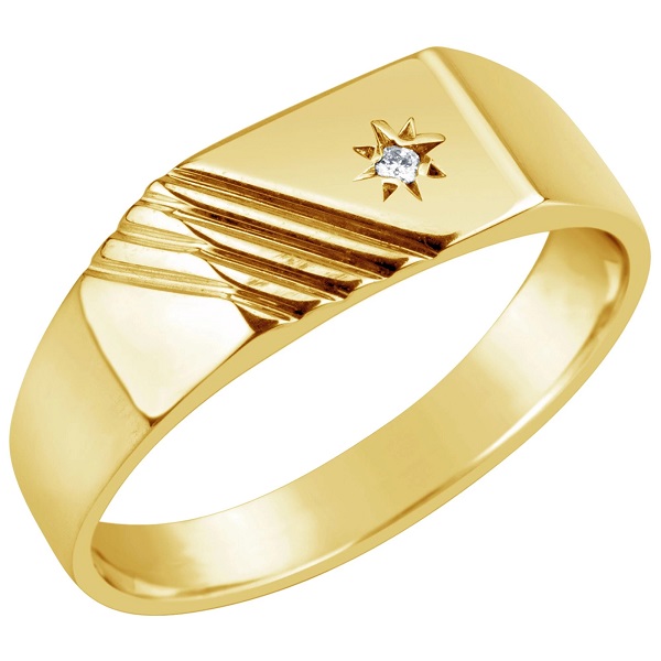 حلقه ازدواج مردانه طلا تک نگین با شیارهای ظریف