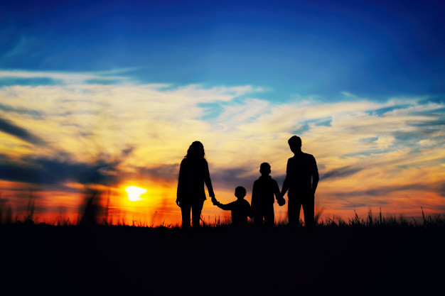 ** ژست عکس خانوادگی در غروب **