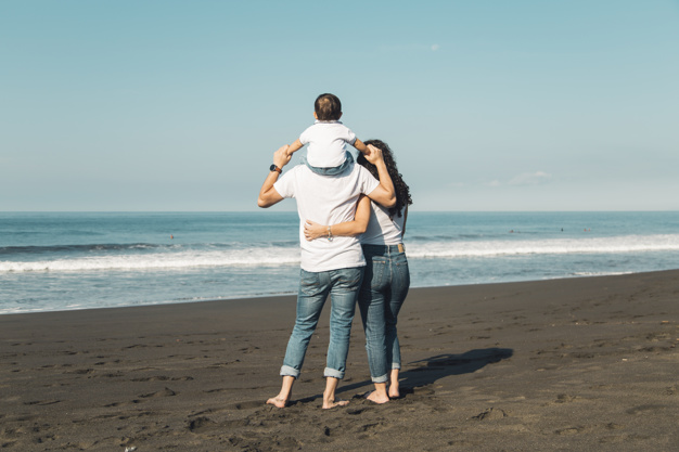 ** ژست عکس خانوادگی کنار دریا **