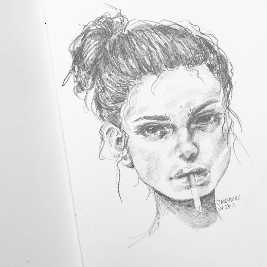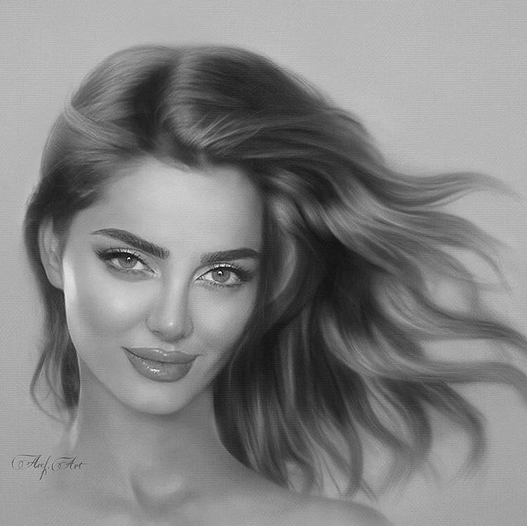 گالری 25 عکس نقاشی دختر فوق العاده زیبا با سیاه قلم و آبرنگ