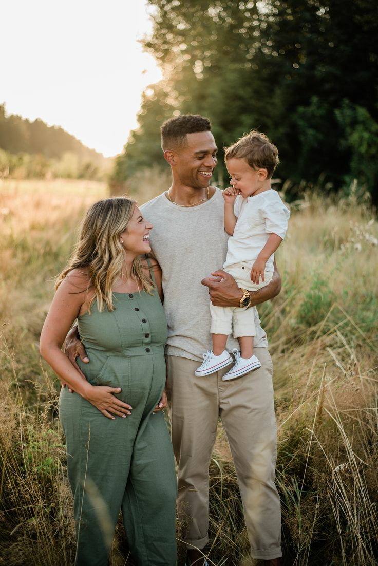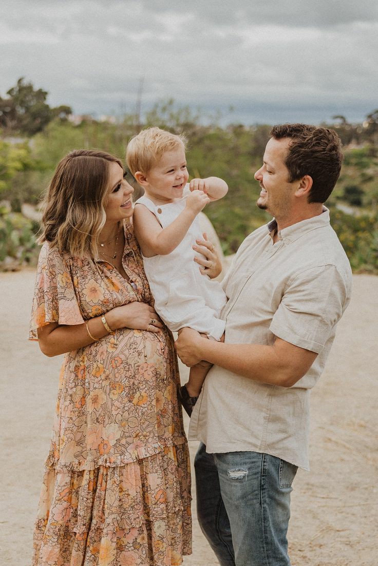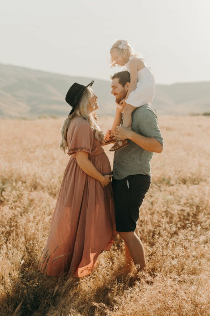 ژست عکس دوران بارداری با همسر و فرزند در طبیعت