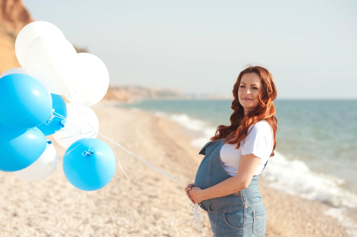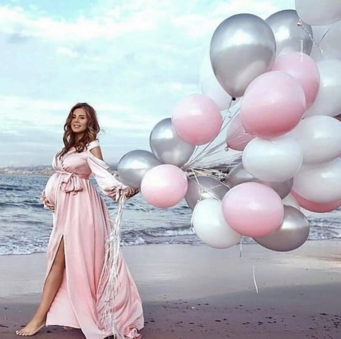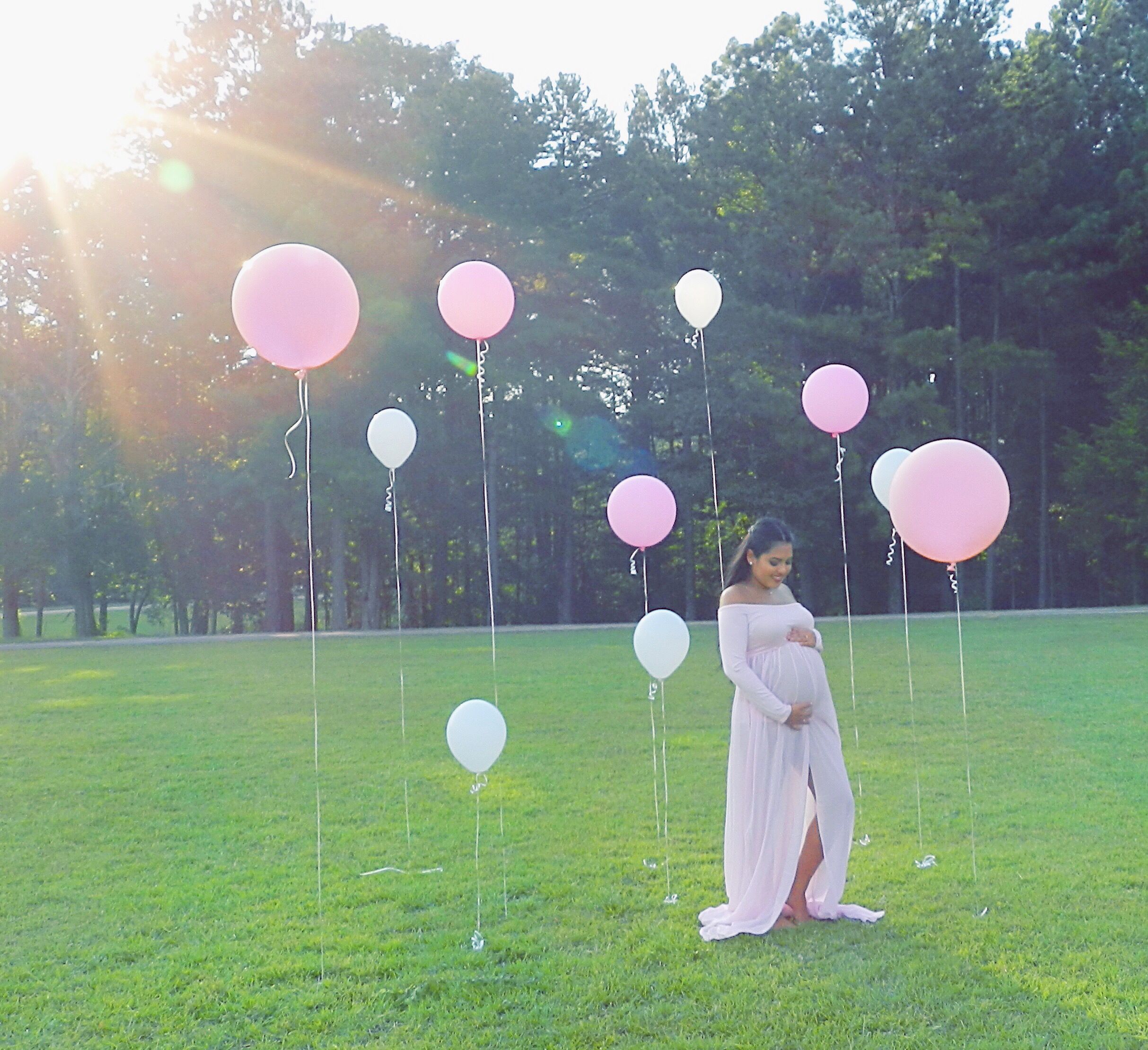 ژست عکس بارداری با بادکنک در فضای باز