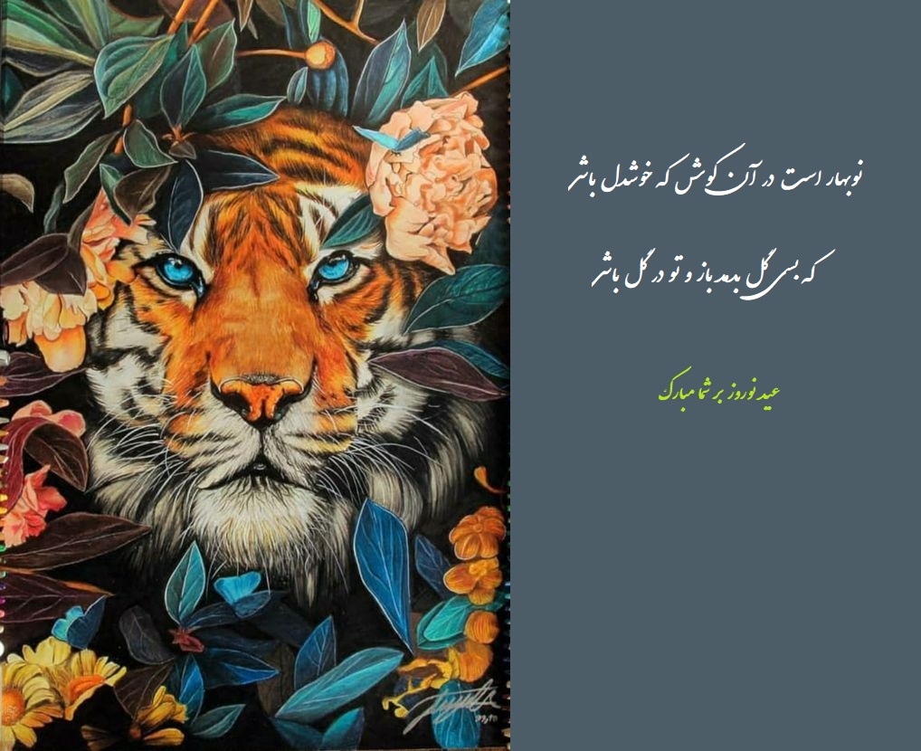 سال 1401 سال ببر است، ببر نماد شجاعت، رهبری و قدرت است. برای تبریک سال 1401 می توانید از عکس نوشته های سال ببر مبارک استفاده کنید که خاص تر هستند. در ادامه تعدادی عکس نوشته تبریک سال نو با عکس ببر آورده شده است که روی آن ها شعر درباره بهار از شاعران معروف نوشته شده است. این عکس های زیبا را دانلود کنید و سال جدید را به عزیزانتان تبریک بگویید.