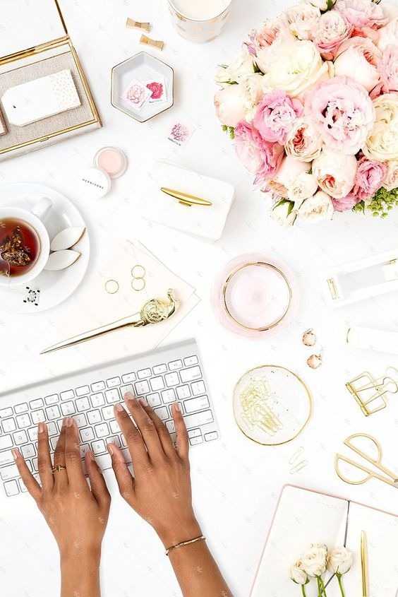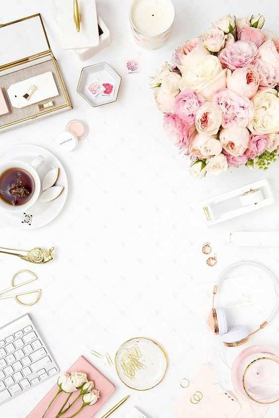 عکس والپیپر دخترونه لاکچری با گل و لوازم روی میز