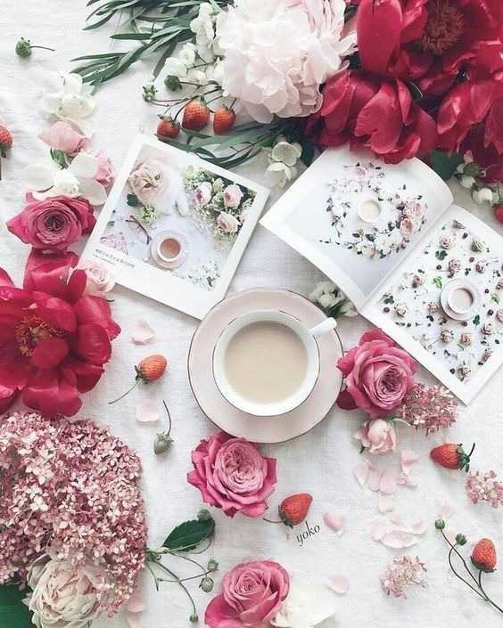عکس والپیپر دخترونه لاکچری با فنجون قهوه و گل