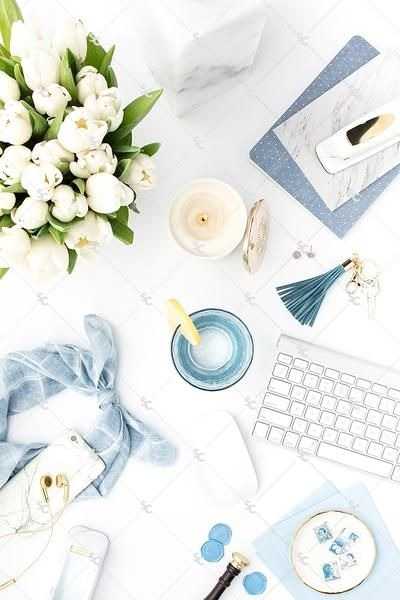 عکس بک گراند دخترونه لاکچری با وسایل شخصی دخترونه (لپ تاپ، کیف پول، شمع)