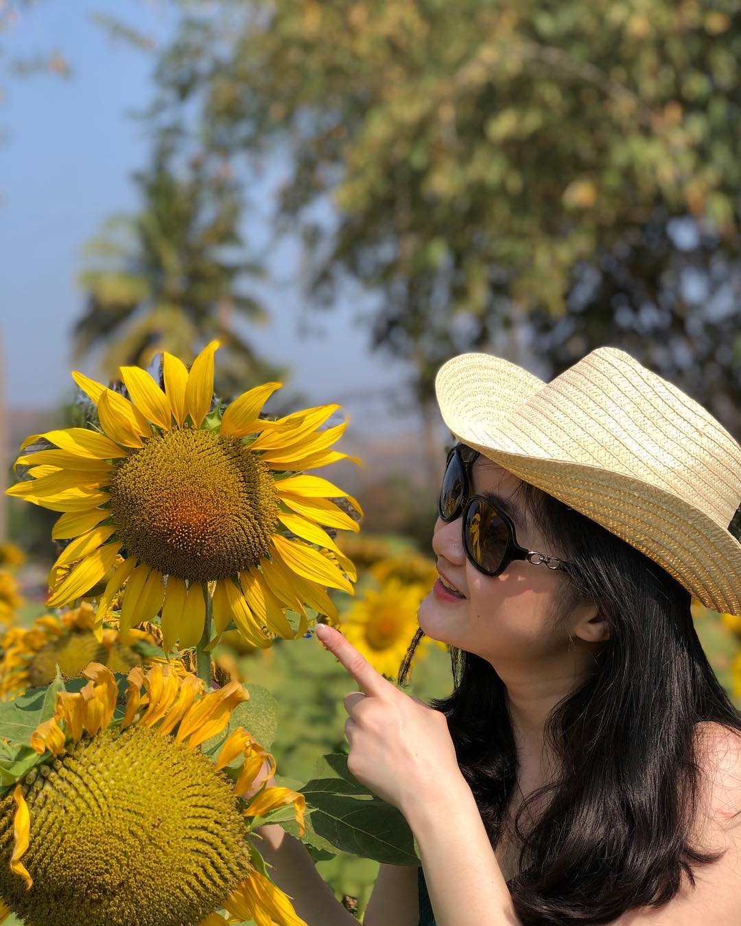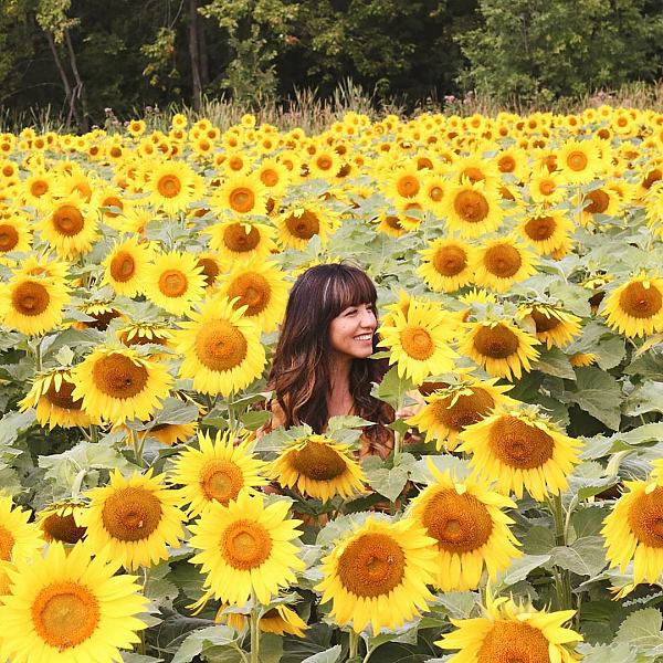 بهترین ژست عکس دختر در مزرعه آفتابگردان