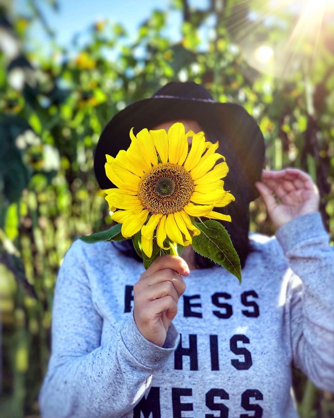 ** ژست عکس دختر در مزرعه آفتابگردان **