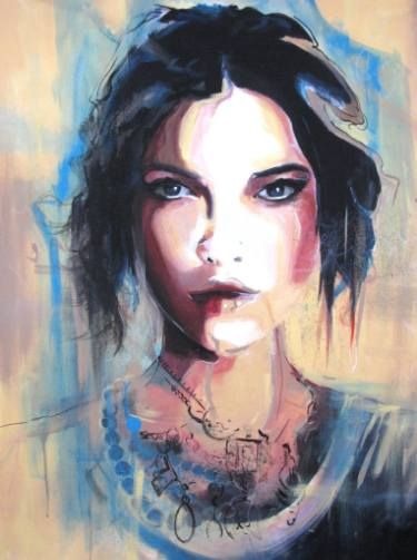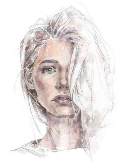 عکس نقاشی دختر با موهای آشفته و غمگین مناسب طراحی با آبرنگ
