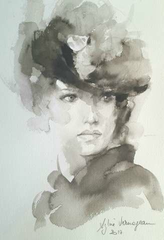 عکس نقاشی دختر زیبا که با آبرنگ کشیده شده
