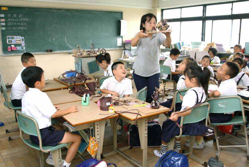 در مدارس ابتدایی ژاپن کلاس درس دانشآموزان ساده و بزرگ طراحی می شود و دانش آموزان برای دروس مختلف از کلاسی به کلاس دیگر منتقل نمیشوند، در کلاس خود حضور دارند و معلمان موضوعات مختلف را به آنان آموزش میدهند. البته برخی کلاسها مانند کلاس اقتصاد، موسیقی، کلاسهای علمی خاص و یا هر موضوعی که نیاز به میز بیشتر دارد برای یادگیری تغییر میکند.در نتیجه تعلق خاطر دانش آموز به کلاس خود و مدرسه به وجود می آید و در واقع همکلاسیها مانند خانواده و محیط مدرسه مانند خانه آنان خواهد بود.