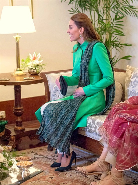 کیت میدلتون در سفر به پاکستان لباسی به رنگ پرچم پاکستان به تن دارد.