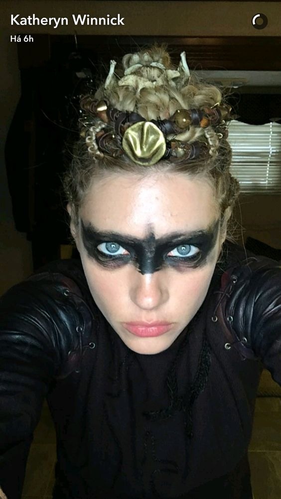 - عکس کاترین وینیک در پشت صحنه فیلم وایکینگ هادر حال گریم