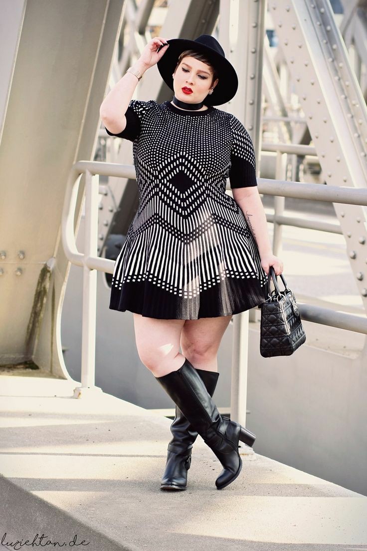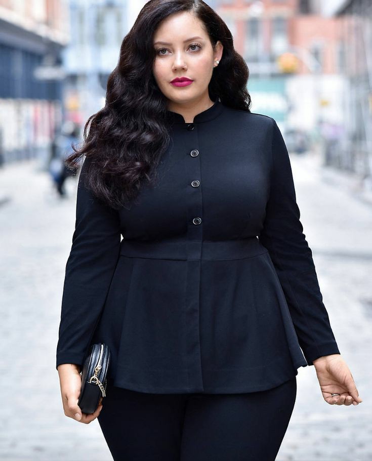 در این استایل مدل لباس و اندام بیشتر از کیف دیده میشود در نتیجه ابن تضاد باعث میشود که اندام درشت تر دیده شود.